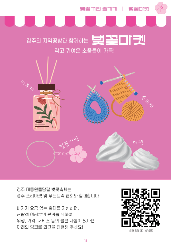 돌담길 레스토랑뿐만 아니라 벚꽃마켓도 있습니다. 3일간의 축제 속에서 추억과 기념품도 남기시면 더 즐거운 여행이 되지 않을까요??