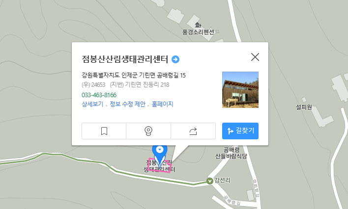 곰배령은 강원도 인제군 기린면 곰배령길 12 (진동리 218)입니다.
