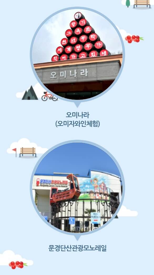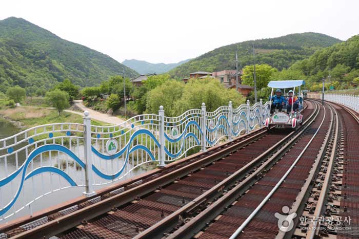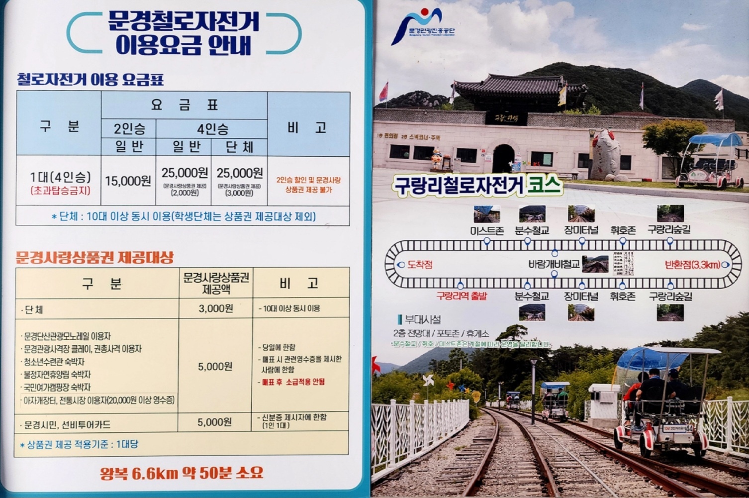 더 이상 사용하지 않는 가은선 철로부지를 매입하고 주변지역 정비사업을 하여 구랑리역에서 먹뱅이까지 총 6.6KM의 레일바이크를 설치를 하였습니다.