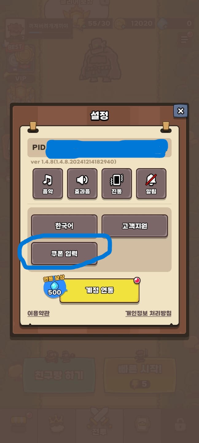 - 설정 메뉴 선택: 메뉴에서 ‘설정’을 클릭한 후 ‘쿠폰 입력’ 항목으로 이동합니다.