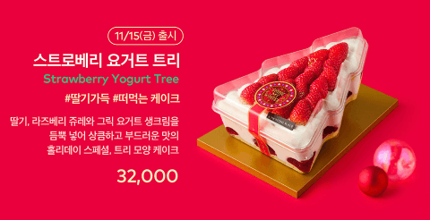신선한 베리와 크림이 어우러져 산뜻하고 달콤한 맛을 선사합니다. 화려한 장식은 크리스마스 분위기를 한층 살려줍니다. - 스트로베리 요거트 트리