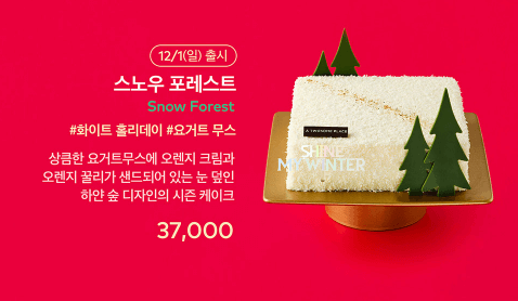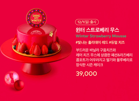 부드러운 무스와 신선한 딸기가 조화를 이룬 크리스마스 무스 케이크로, 입에서 사르르 녹는 텍스처가 일품입니다. - 스노우 포레스트