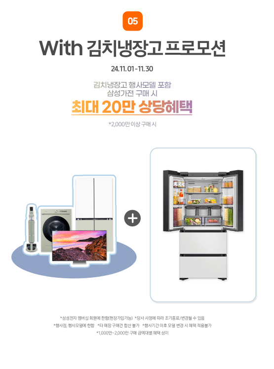 - 사은품 증정: 비스포크 냉장고, 세탁기 등 고가 가전제품을 구매할 경우 소형 가전제품이 사은품으로 증정됩니다.