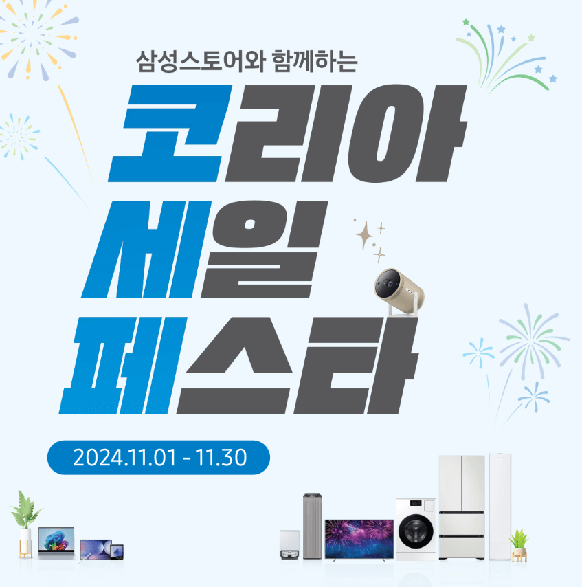 2024 코리아세일페스타(코세페)는 삼성전자가 다양한 인기 가전제품과 전자기기를 대상으로 특별 프로모션과 추가 할인 혜택을 제공합니다. 삼성 가전 패키지부터 프리미엄 TV, 스마트폰, 생활가전까지 다양한 제품군이 행사에 포함되어 있으며, 아래에서 상세한 할인 정보와 쿠폰 혜택을 확인하실 수 있습니다. 🎉