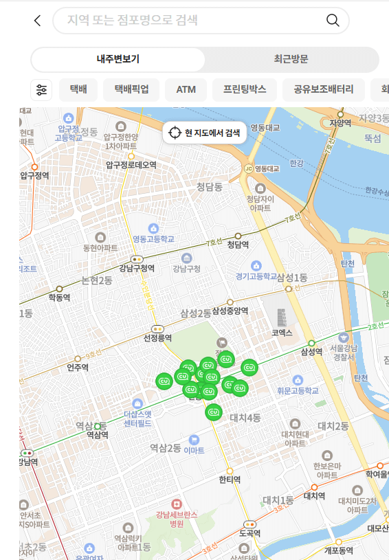 - GPS 기능과 연동되어 내 위치 기반으로 가장 가까운 매장을 표시합니다.