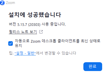 위와 같은 화면이 나오면 설치는 끝이 났습니다.
